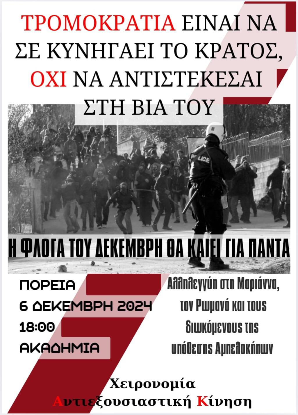 ΠΟΡΕΙΑ 6 ΔΕΚΕΜΒΡΗ(ΙΩΑΝΝΙΝΑ) – ΤΡΟΜΟΚΡΑΤΙΑ ΕΙΝΑΙ ΝΑ ΣΕ ΚΥΝΗΓΑΕΙ ΤΟ ΚΡΑΤΟΣ ΟΧΙ ΝΑ ΑΝΤΙΣΤΕΚΕΣΑΙ ΣΤΗ ΒΙΑ ΤΟΥ