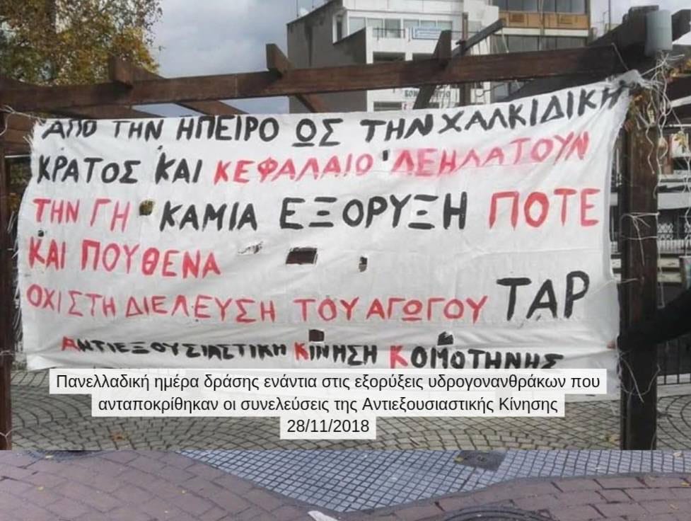 Διατηρούμε, φυσικά, τις επιφυλάξεις μας για το πώς θα εξελιχθεί η υπόθεση, εν αναμονή και της εκδίκασης της υπόθεσης στο Συμβούλιο της Επικρατείας όπου έχουν προσφύγει κάτοικοι και περιβαλλοντικές οργανώσεις. Ωστόσο, κάθε φορά που μια εταιρεία-κολοσσός γκρινιάζει που το κράτος δεν στάθηκε ικανό να τσακίσει τις κοινωνικές αντιστάσεις, κάθε φορά που διάφοροι εγκάθετοι/ψευτο-αναλυτές/οικονομολόγοι της πλάκας διαμαρτύρονται που υπάρχουν ακόμα άνθρωποι και κοινωνικά κινήματα που μπαίνουν ανάχωμα στην καπιταλιστική λεηλασία, κάθε φορά που το κράτος και οι κυβερνήσεις εκτίθενται για τα ψέματα και τις μεγαλοστομίες – πασπαλισμένες με εθνικιστικές φανφάρες – που έχουν εκστομίσει, έχουμε λόγο να χαμογελάμε και να νιώθουμε ηθική ικανοποίηση.