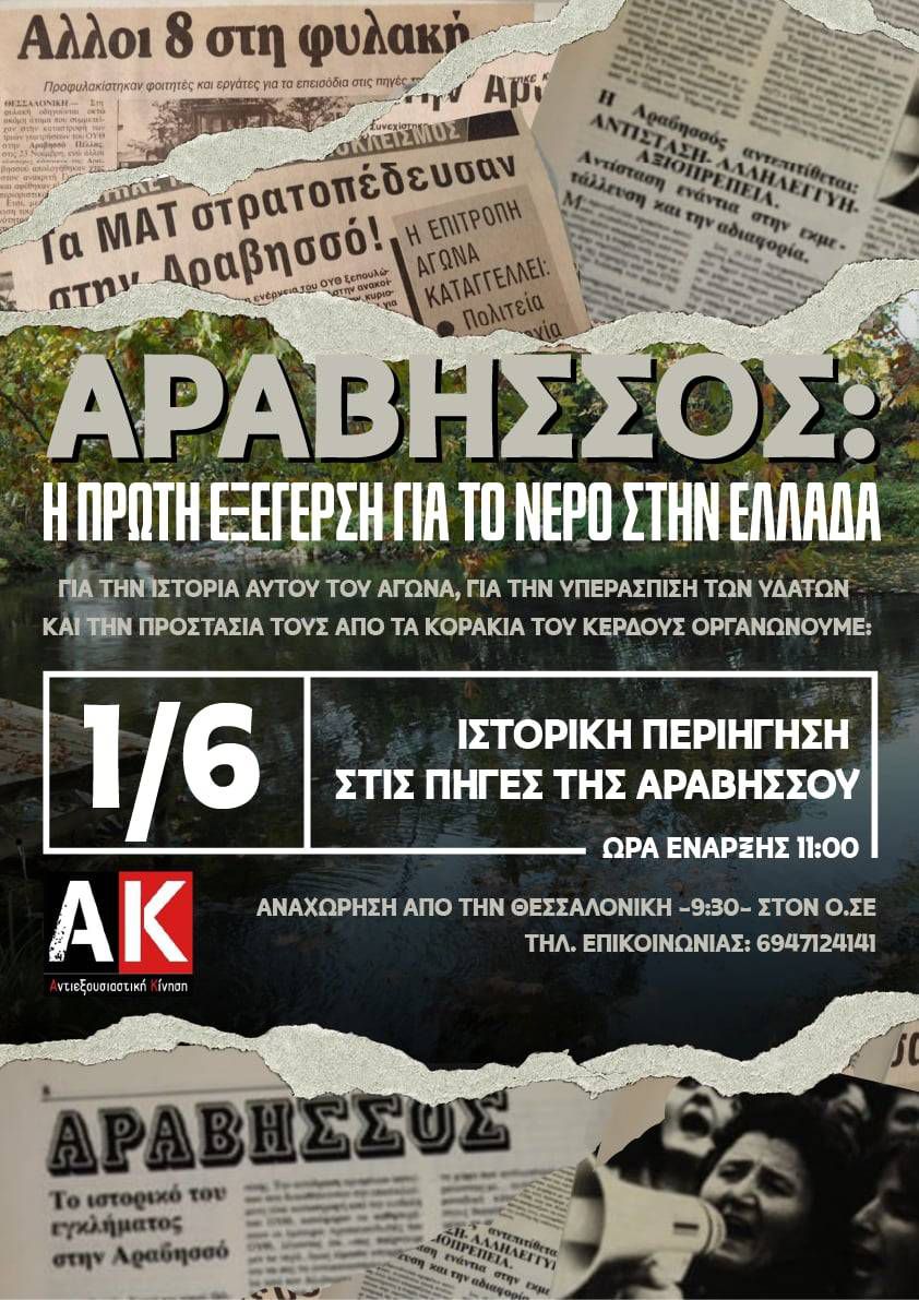 Η Αραβησσός ήταν η απαρχή των αγώνων για τους φυσικούς πόρους και για την υπεράσπισή τους από την ληστρική επίθεση του κράτους και των οργανισμών που τους εμπορεύονται.