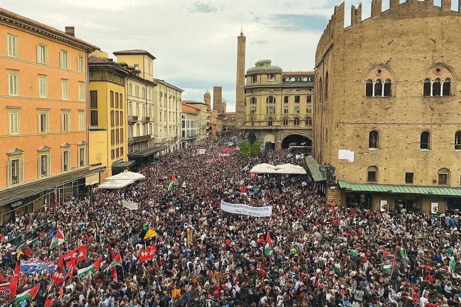 Ας περάσουμε, λοιπόν, σε μια συνοπτική καταγραφή της απεργιακής ημέρας στην Μπολόνια. Τα πρώτα καλέσματα ξεκίνησαν από τις 8 το πρωί με στόχο οι φοιτητές να παρέμβουν σε κάθε μάθημα όπου οι καθηγητές δεν απεργούσαν μπλοκάροντας την διαδικασία, και φυσικά δίνοντας έτσι την ευκαιρία και σε κάθε άλλο φοιτητή που θα ήθελε, να έχει την ευκαιρία να συμμετάσχει στις διαδηλώσεις. Από τις 9.30πμ ξεκίνησαν συλλογικά ατομικότητες και κολλεκτίβες από όλα τα προάστια της πόλης με στόχο να μαζευτούν στις 10.30πμ στην κεντρική πλατεία της πόλης, Piazza Maggiore, από όπου και θα ξεκινούσε επίσημα η μέρα. Μετά τις πρώτες καταγραφές γίνεται λόγος για πάνω από 50.000 άτομα, με δημοσιεύματα να αναφέρουν ακόμη και πάνω 100.000 (σε μια πόλη των 391.000 – 1 στους 4 περίπου ήταν στον δρόμο). Εφόσον η κεντρική πλατεία αλλά και οι τριγύρω δρόμοι βούλιαξαν από τον κόσμο στις 11.30 σχεδόν, ξεκίνησε μια μαζικότατη πορεία, η οποία πέρασε από όλους τους μεγάλους κεντρικούς δρόμους. Όταν η πορεία έφτασε στο ύψος του σιδηροδρομικού σταθμού, συναντήσαμε κάτι πρωτοφανές. Αστυνομικές δυνάμεις είχαν κατακλύσει το σταθμό και τους γύρω δρόμους, φοβούμενοι πως μετά την εισβολή των διαδηλωτών στο σταθμό το 2024 στις αντίστοιχες κινητοποιήσεις για την Παλαιστίνη, θα συνέβαινε το ίδιο. Φέτος, όμως, η πορεία ακολούθησε μια διαφορετική διαδρομή, βγήκε εκτός του κέντρου, έφτασε στο κεντρικότερο σημείο ένωσης του κέντρου με την εθνική οδό και εκεί σχηματίστηκε κάτι όμορφο. Διαδηλωτές μαζί με εργαζομένους συνεργάστηκαν και έκλεισαν τόσο τη βάση του αυτοκινητοδρόμου αλλά και όλη την επάνω γέφυρα, διακόπτοντας την κυκλοφορία προς κάθε δυνατή κατεύθυνση και κρατώντας κλειστούς πάνω από 4 δρόμους. Η κατάσταση παρέμεινε έτσι για αρκετή ώρα έως ότου οι διαδηλωτές ξεκίνησαν ειρηνικά να αποχωρούν με στόχο να συνεχίσουν την πορεία, η οποία θα κατέληγε ξανά στο κέντρο της πόλης έπειτα από ήδη 5 ώρες στο δρόμο.