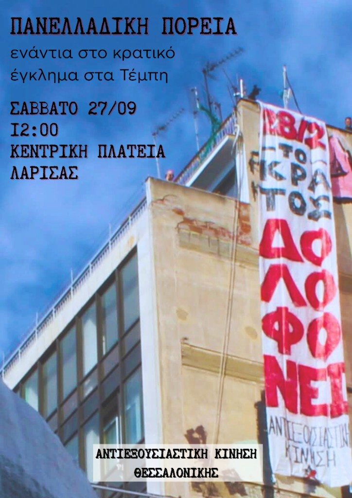 - Καλούμε-συμμετέχουμε στην Πανελλαδική Πορεία για το κρατικό έγκλημα στα Τέμπη: