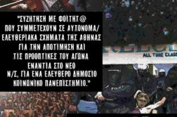 Γνωρίζουμε πολύ καλά ότι οι κρατικοί κατασταλτικοί μηχανισμοί χρησιμοποιούνται για να κάμψουν κάθε αντίσταση(μαθητών, φοιτητριών, εκπαιδευτικών) που προσπαθεί να εμποδίσει την εφαρμογή των νεοφιλελεύθερων πολιτικών της εκπαιδευτικής αναδιάρθρωσης της παιδείας, των ιδιωτικοποιήσεων, την εμπορευματοποίηση της εκπαίδευσης και κάθε κοινωνικού αγαθού. Αυτή τη στιγμή προτάσσεται μια βιτρίνα εξευγενισμού που θέλει να επιβάλλει σιγή νεκροταφείου στα πανεπιστήμια, να τα εντατικοποιήσει και να τα αποστειρώσει ακόμη περισσότερο. Ήδη, με τη θέσπιση του ανωτάτου ορίου φοίτησης, μετράμε εκατοντάδες χιλιάδες διαγραφές φοιτητ(ρι)ών, τη στιγμή που τη σκυτάλη παίρνουν τα ιδιωτικά πανεπιστήμια. Η ακαδημαϊκή έρευνα χάνει το κοινωνικό της πρόσημο και εργαλειοποιείται για την εξυπηρέτηση επιχειρηματικών, οικονομικών και πολεμικών συμφερόντων. Η λίστα δεν έχει πάτο. Αναγνωρίζουμε ότι το ζήτημα των πανεπιστημίων και του ασύλου είναι ένα κατεξοχήν κοινωνικό ζήτημα. Όπως και κάθε κοινωνικό ζήτημα εφάπτεται και επηρεάζει άμεσα τη διάρθρωση της εκπαίδευσης.