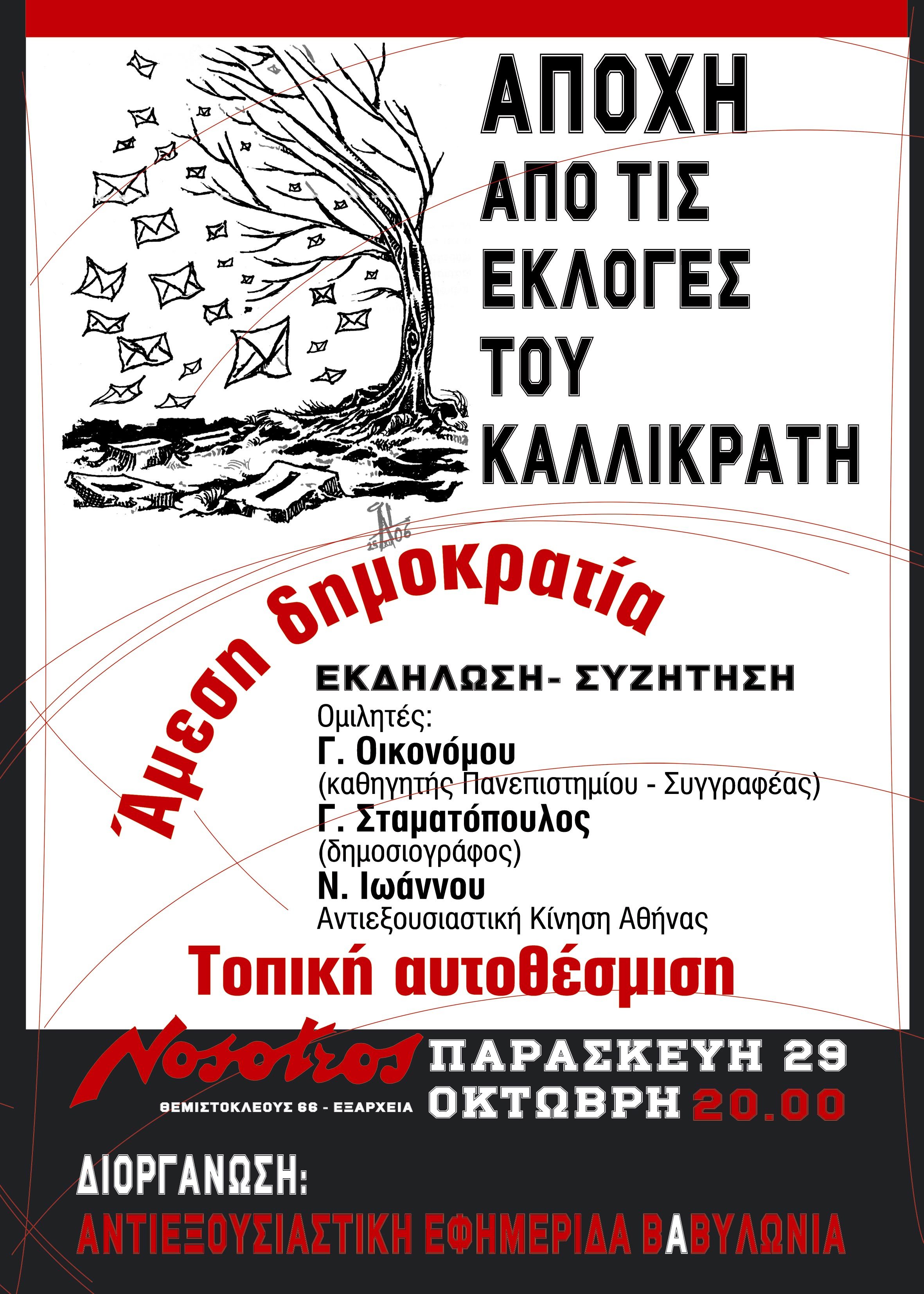 Η άμεση δημοκρατία είναι μια πολύ παλιά ιστορία. Ανέκαθεν αποτελούσε το όχημα της οργάνωσης των μαζικών κοινωνικών κινημάτων, που επιτίθονταν στα καθεστώτα τους. Πάντα υποχωρούσε, όταν η παλίρροια των κοινωνικών αγώνων έδινε τη θέση της στην άμπωτη της παγίωσης ηγετικών ομάδων και σχέσεων κυριαρχίας. Ήταν δε το αρχιμήδειο σημείο, στο οποίο προσέγγιζαν οι πιο προοδευτικές τάσεις της ριζοσπαστικής σκέψης, της αναρχίας και του κομμουνισμού. Αυτά από το παρελθόν. Σήμερα, η πτώση των ιδεολογιών και η χρεωκοπία των κάθε λογής λογικών της πρωτοπορίας φέρνει την άμεση δημοκρατία στο προσκήνιο, ως το εργαλείο για την ανάδυση του αυτεξούσιου ατόμου, την ανάπτυξη της κοινωνικοποίησης κόντρα στον κοινωνικό κατακερματισμό και την συλλογική επανεφεύρεση της ριζοσπαστικής κοινωνικής αλλαγής. Στην πιο προοδευτική της εκδοχή, αυτή της αυτοθέσμισης, η άμεση δημοκρατία συνιστά ενδελεχή και εμπεριστατωμένη πολιτική και πολιτειακή πρόταση για την ανατροπή του υπάρχοντος και την προοπτική της κοινωνικής απελευθέρωσης. Στο ξεκίνημα του 21ου αιώνα η άμεση δημοκρατία ως αυτοθέσμιση υιοθετείται σταδιακά ως στρατηγική επιλογή από τα ανταγωνιστικά κινήματα στην πάλη ενάντια στην κυριαρχία. Από τις πλατείες αυτού του κόσμου στέλνεται το μήνυμα των “από κάτω” : ιστορία ερχόμαστε.